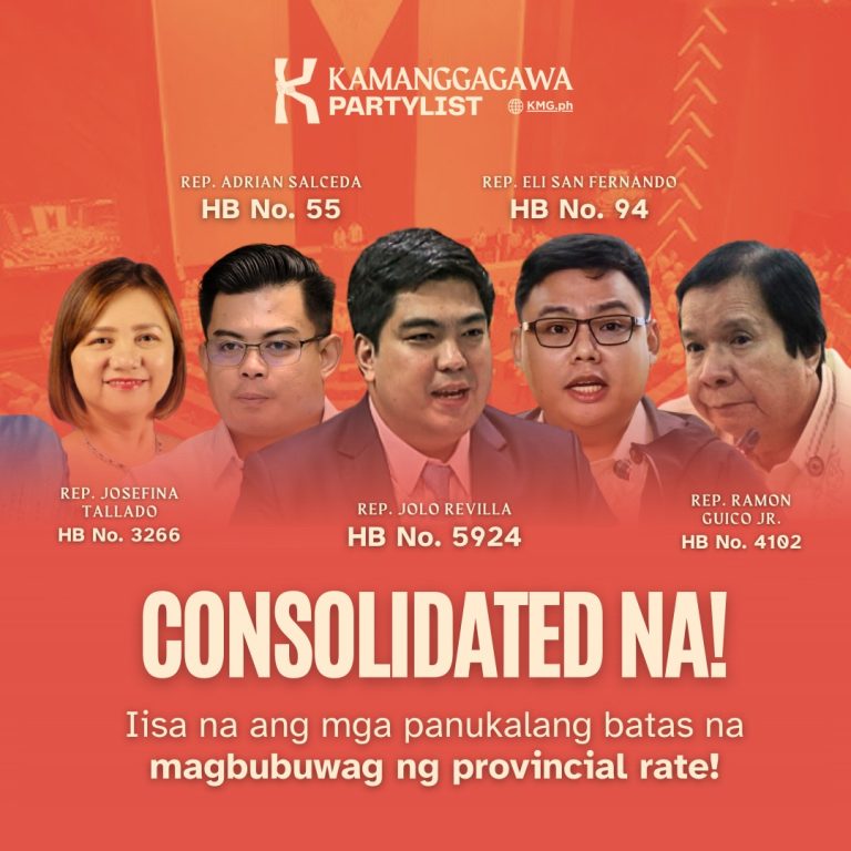 Na-consolidate o napagsama-sama na ang iba’t ibang mga panukalang batas na magbubuwag ng Provincial Rate, kabilang na ang inihain ng Kamanggagawa Partylist na 𝐇𝐨𝐮𝐬𝐞 𝐁𝐢𝐥𝐥 𝟗𝟒. Sa susunod na Labor Committee hearing, inaasahan nating maipapakita at maaaprubahan na ang substitute bill na magiging batayan ng ikalawang pagbasa ng batas.